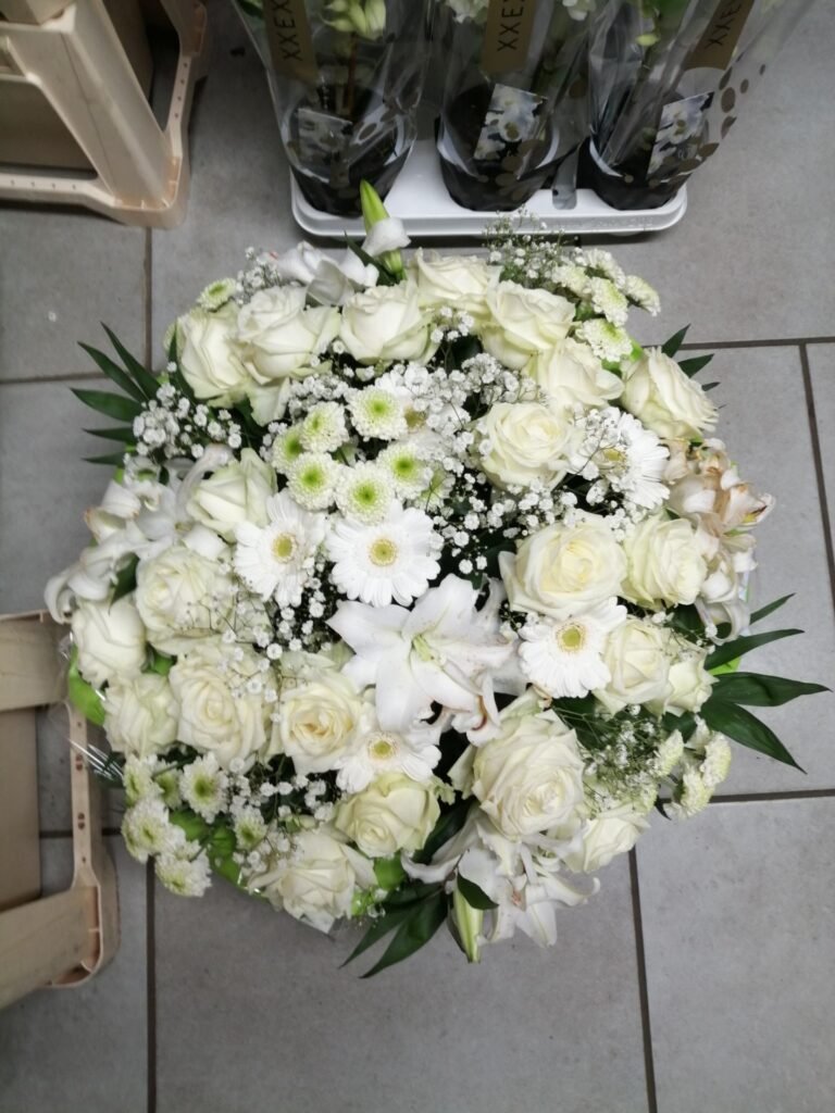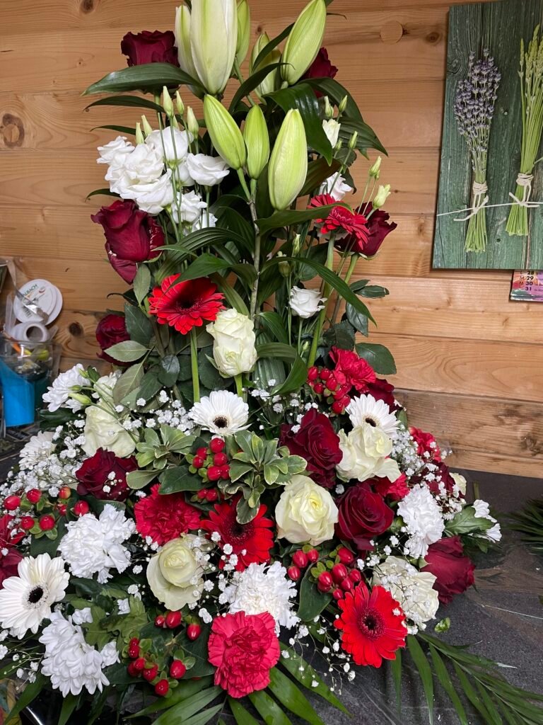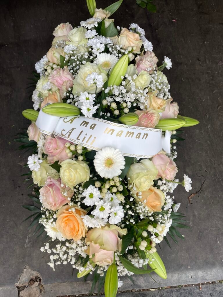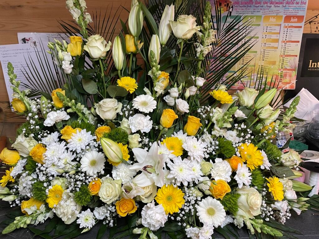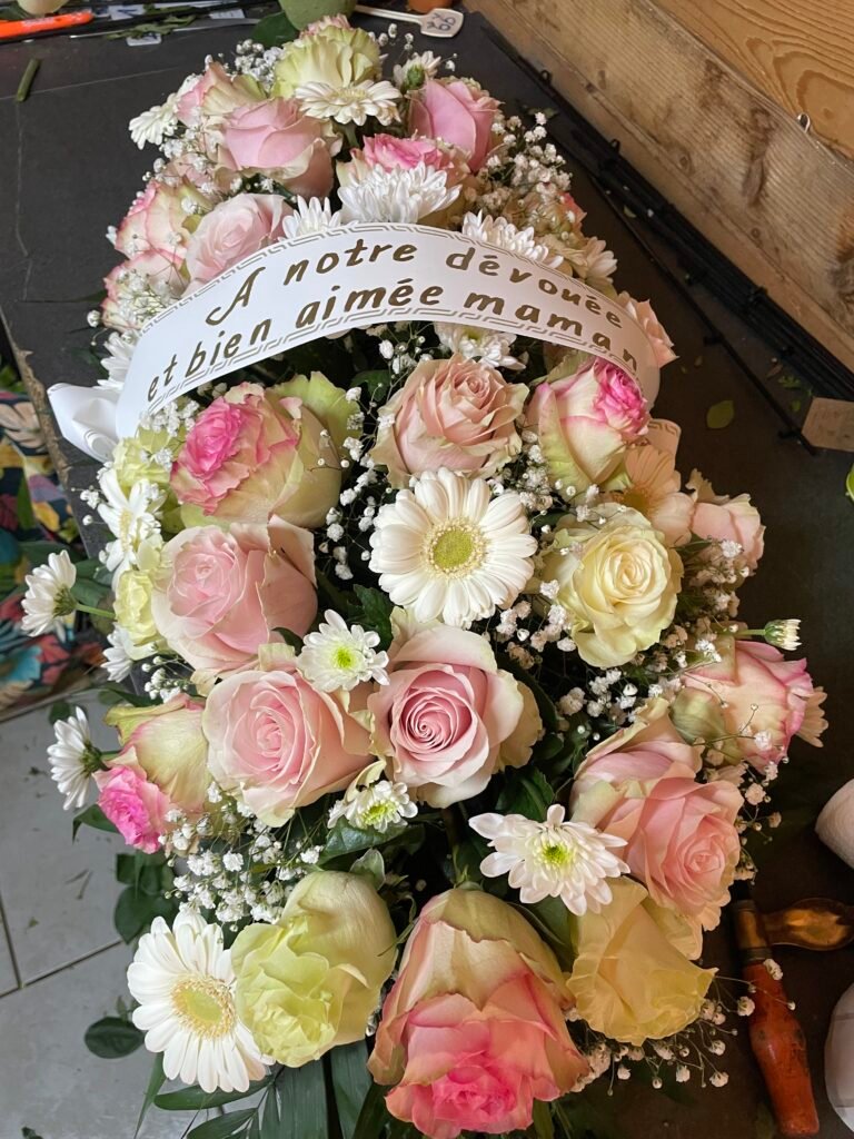 La partie dédiée au deuil a été pensée pour offrir des compositions florales sobres, élégantes et respectueuses, permettant d’exprimer vos sentiments avec douceur et sincérité. Gerbes, coussins, couronnes, devants de tombe ou compositions personnalisées : chaque création est réalisée avec soin, en tenant compte de vos souhaits, des symboles floraux et du message que vous souhaitez transmettre.