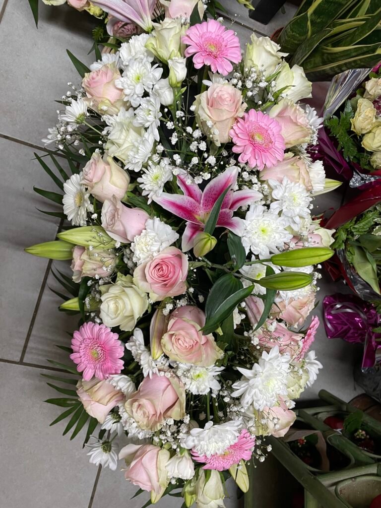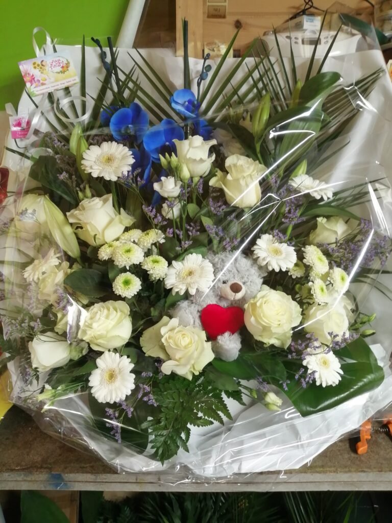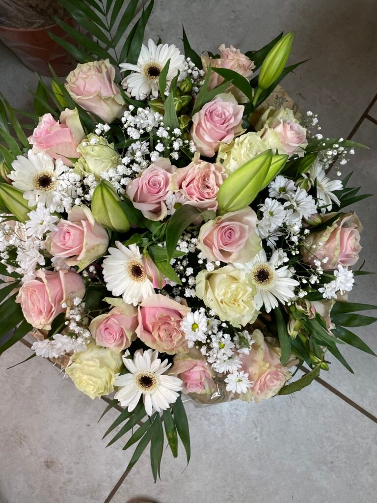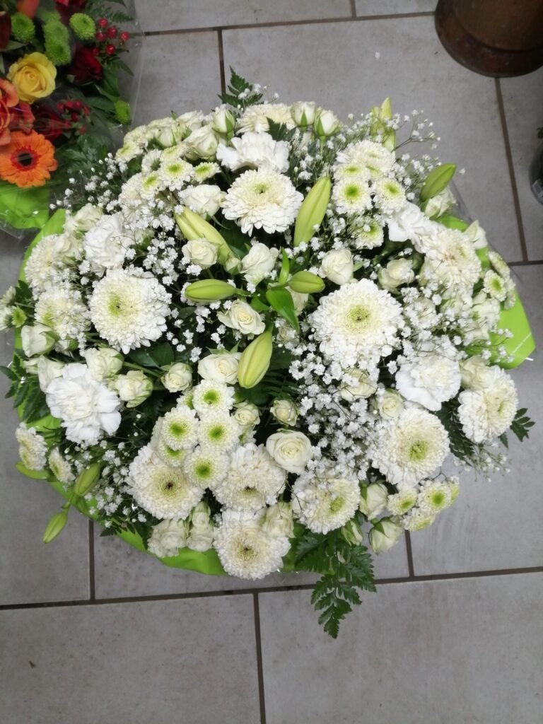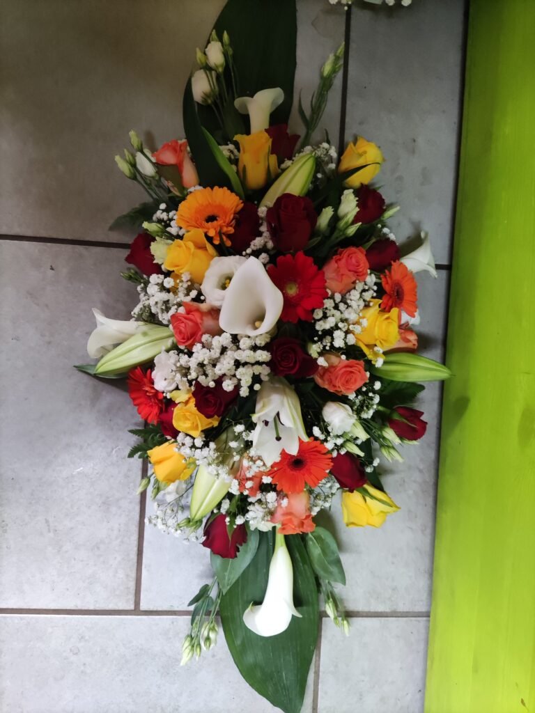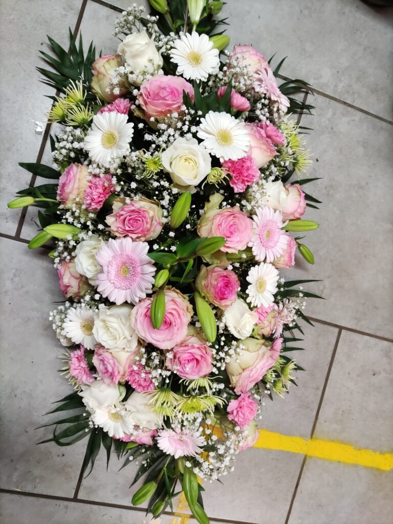 La partie dédiée au deuil a été pensée pour offrir des compositions florales sobres, élégantes et respectueuses, permettant d’exprimer vos sentiments avec douceur et sincérité. Gerbes, coussins, couronnes, devants de tombe ou compositions personnalisées : chaque création est réalisée avec soin, en tenant compte de vos souhaits, des symboles floraux et du message que vous souhaitez transmettre.