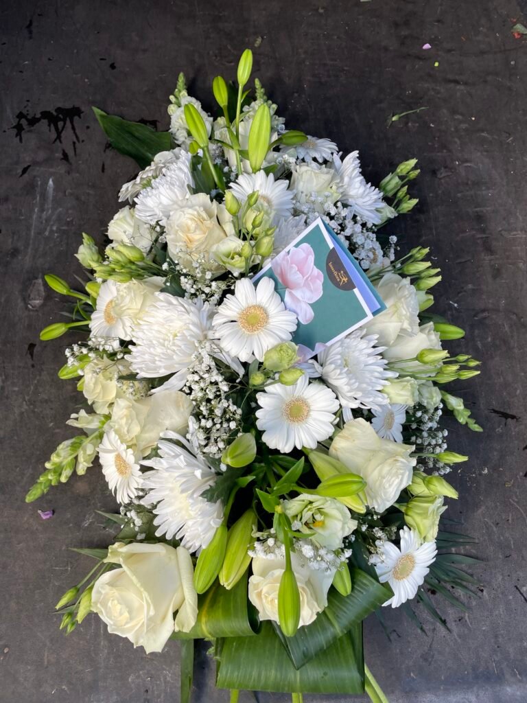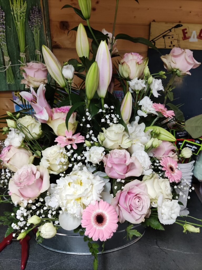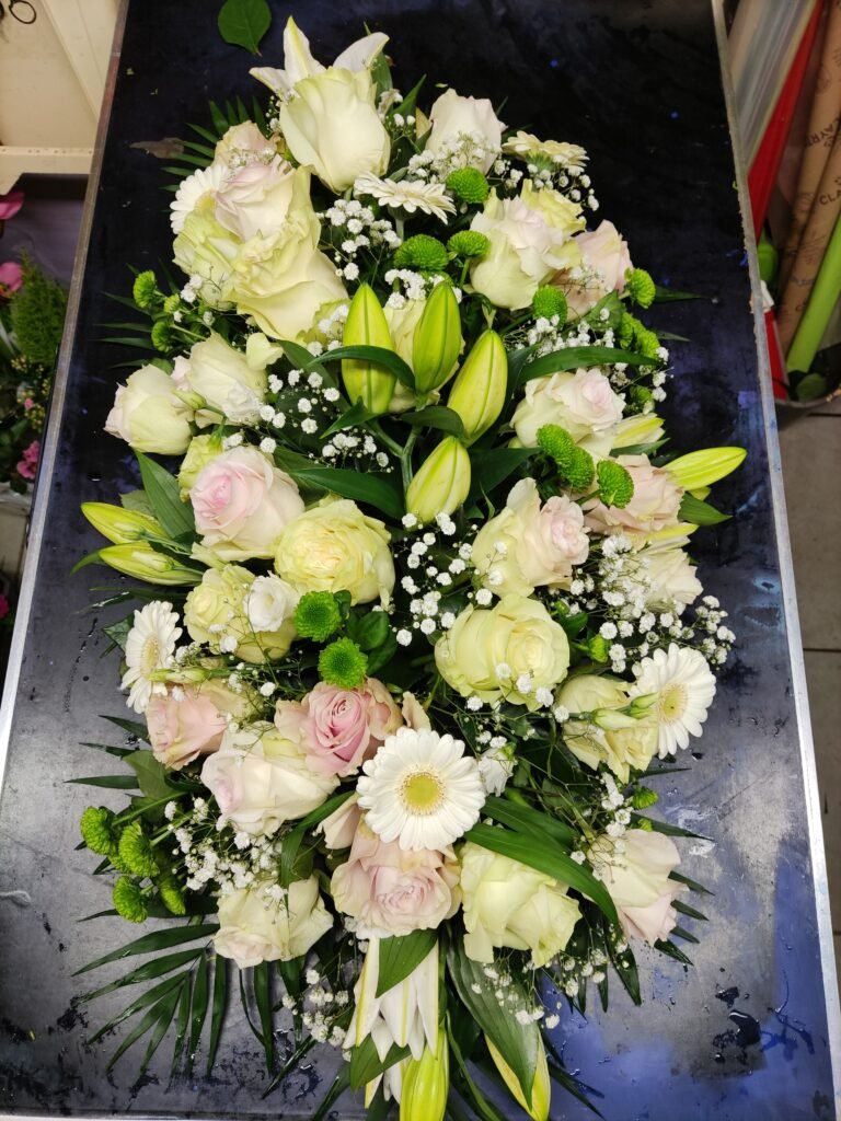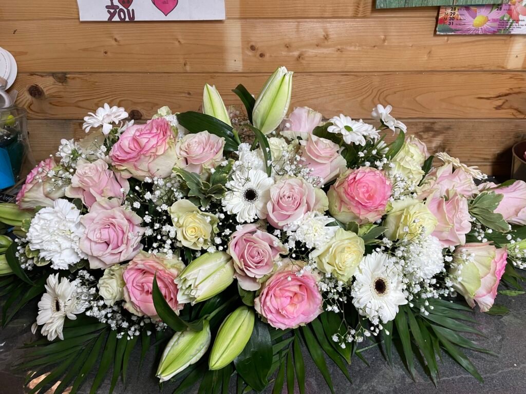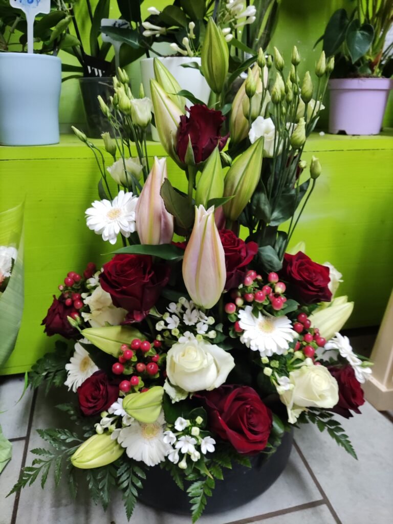 La partie dédiée au deuil a été pensée pour offrir des compositions florales sobres, élégantes et respectueuses, permettant d’exprimer vos sentiments avec douceur et sincérité. Gerbes, coussins, couronnes, devants de tombe ou compositions personnalisées : chaque création est réalisée avec soin, en tenant compte de vos souhaits, des symboles floraux et du message que vous souhaitez transmettre.
